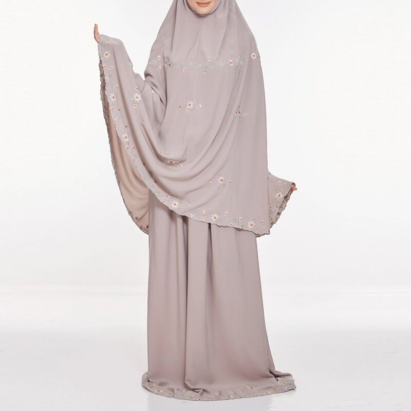 Embroidery Elegant Prayer Set Malaysia Telekung – Bean Pink