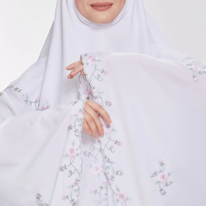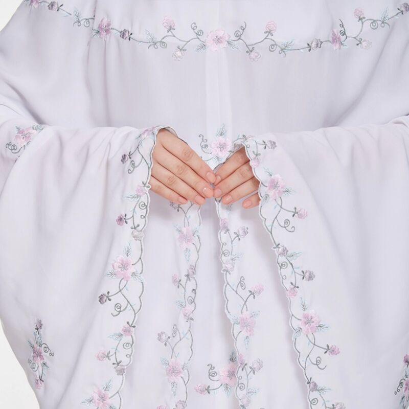 Embroidery Elegant Prayer Set Malaysia Telekung – White